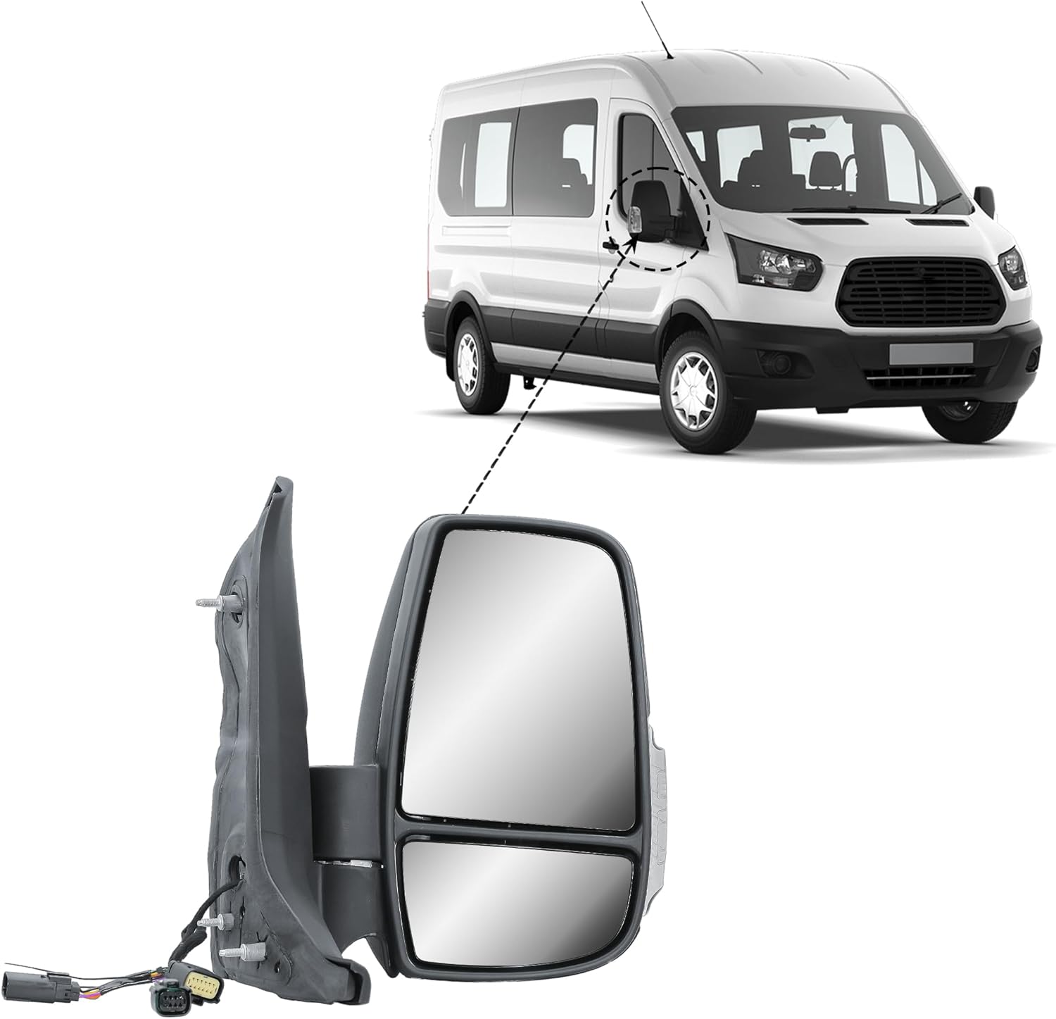 Aligoparts Driver Right Side Door Wing Mirror O/S Manual Non-Heated Short Arm for Ford Transit MK8 2014–2026